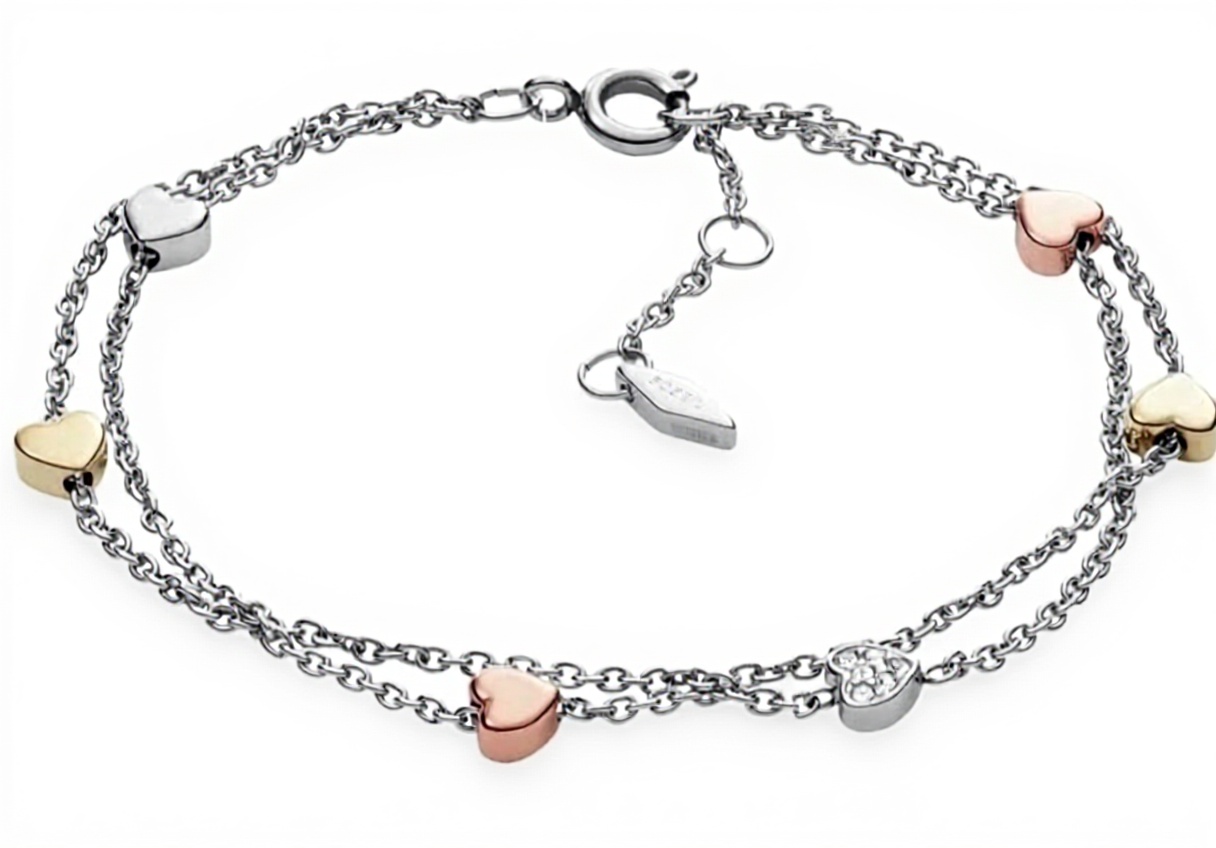 Bracelet Fossil double chaîne en acier inoxydable pour femme