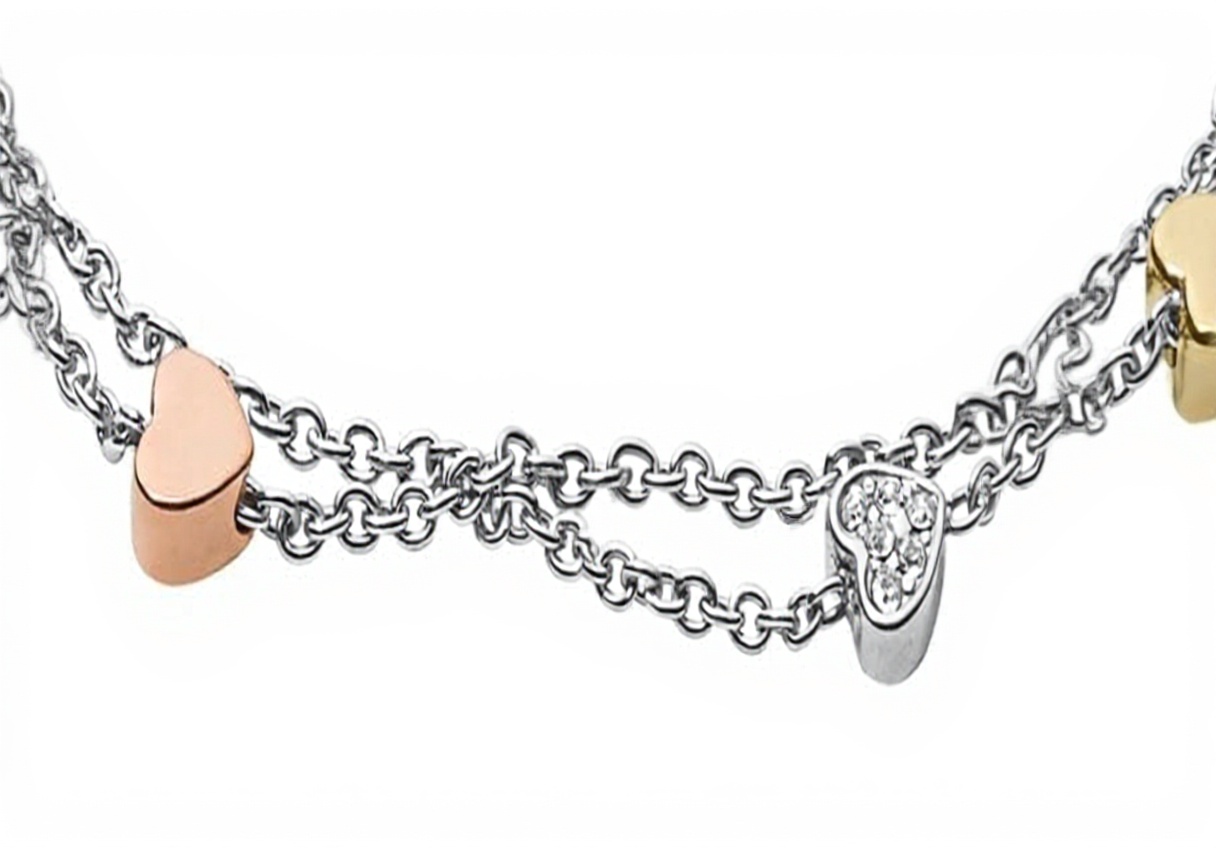 Ce bracelet Fossil se distingue par son design raffiné avec deux chaînes entrelacées en acier inoxydable, offrant une finition polie et une durabilité exceptionnelle. Le fermoir mousqueton assure une fermeture sécurisée et facile, tandis que le style tri-tone ajoute une touche de modernité à cet accessoire intemporel.