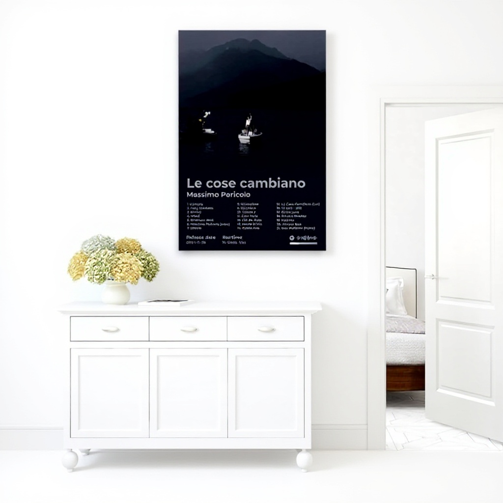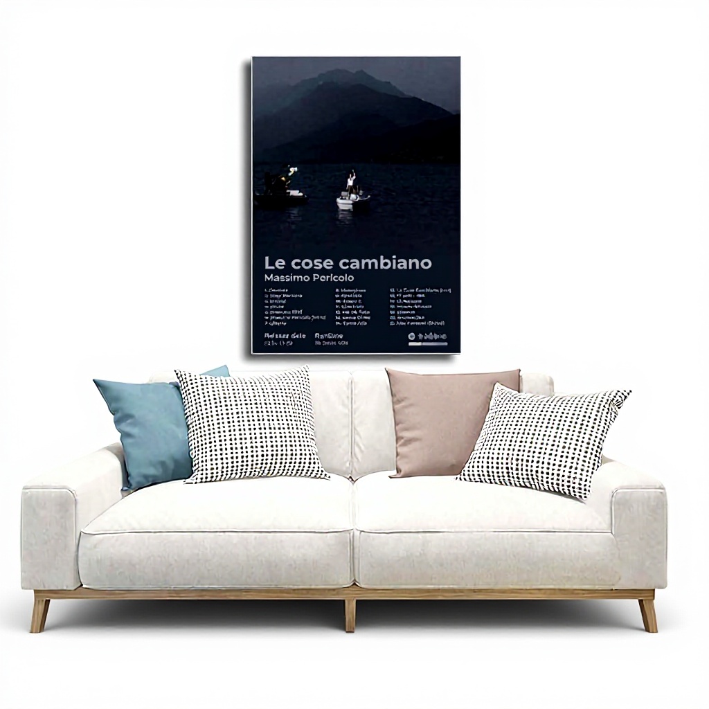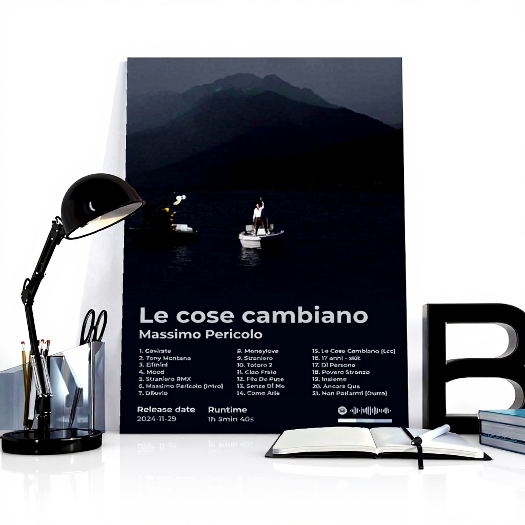 Cette affiche d’art exclusive présente l’album emblématique ‘Le Cose Cambiano’ de Massimo Pericolo dans sa version deluxe. L’impression haute résolution sur toile utilise une encre écologique imperméable et résistante aux UV, garantissant une durabilité exceptionnelle. La reproduction fidèle inclut la couverture deluxe et la tracklist complète pour les vrais connaisseurs.